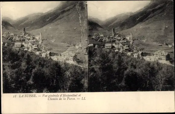 Stereo Ak Disentis Kt. Graubünden, Vue Générale d'Hospenthal et Chemin de la Furca