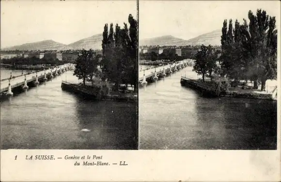 Stereo Ak Genf in der Schweiz, Brücke, Mont Blanc