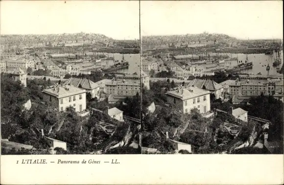 Stereo Ak Genova Genua Ligurien, Panorama vom Ort