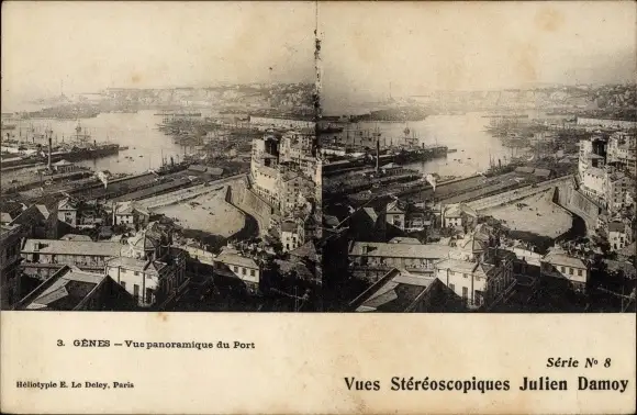 Stereo Ak Genova Genua Ligurien, Vue panoramique du Port