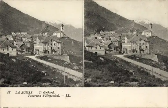 Stereo Ak Hospental Kt. Uri Schweiz, Saint Gothard, Panorama