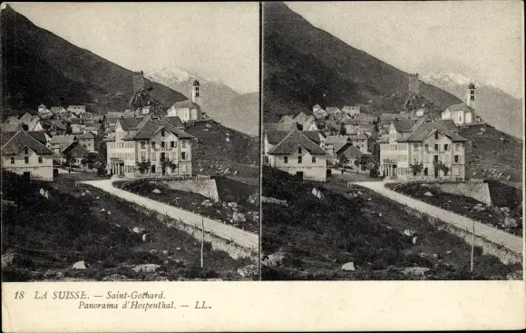 Stereo Ak Hospental Kt. Uri Schweiz, Saint Gothard, Panorama d'Hospenthal