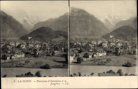 Stereo Ak Interlaken Kanton Bern Schweiz, Panorama, Jungfrau