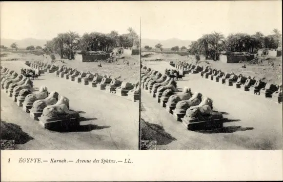 Stereo Ak Karnak Ägypten, Avenue des Sphinx