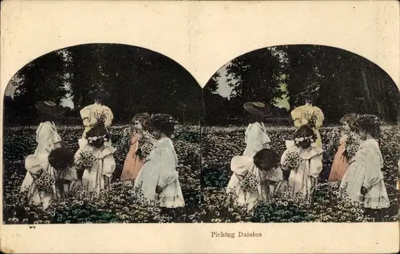 Stereo Ak Kinder, Gänseblümchen pflücken