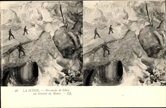 Stereo Ak Kt Wallis Schweiz, Rhonegletscher, Kletterer