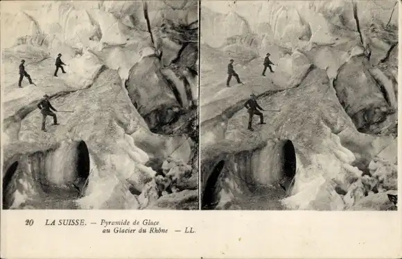 Stereo Ak Kt Wallis Schweiz, Rhonegletscher, Pyramide de Glace au Glacier du Rhone