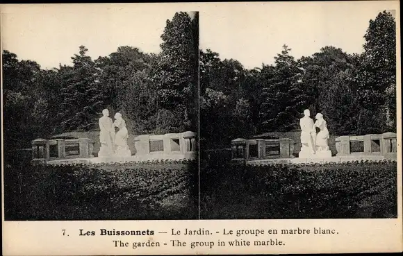 Stereo Ak Lisieux Calvados, Les Buissonnets, Le Jardin, Le groupe en marbre blanc