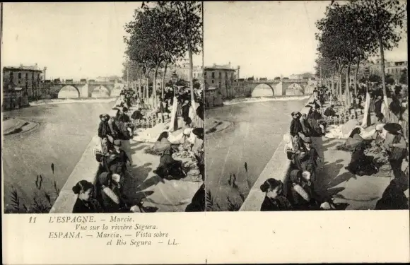 Stereo Ak Murcia Spanien, Vue sur la Rivière Segura