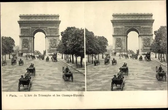 Stereo Ak Paris VIII, Triumphbogen, Arc de Triomphe, Les Champs Elysées