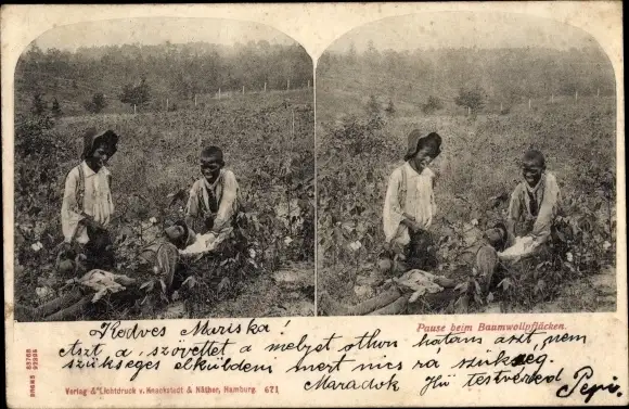 Stereo Ak Pause beim Baumwollpflücken, Baumwollpflücker