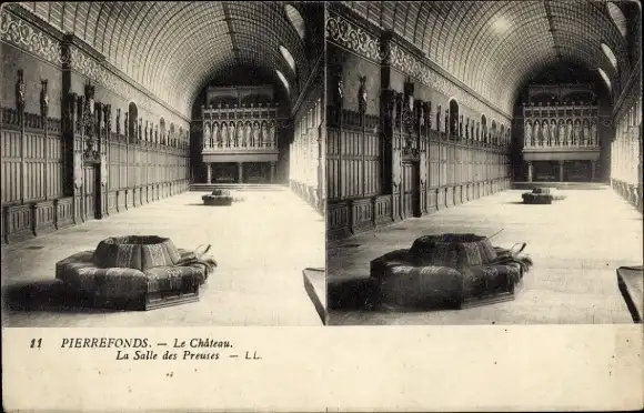 Stereo Ak Pierrefonds Oise, Le Chateau, La Salle des Preuses