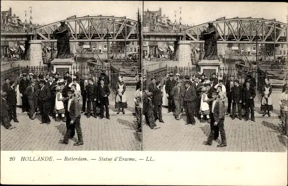 Stereo Ak Rotterdam Südholland Niederlande, Statue Erasmus