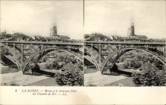 Stereo Ak Stadt Bern Schweiz, Neue Eisenbahnbrücke