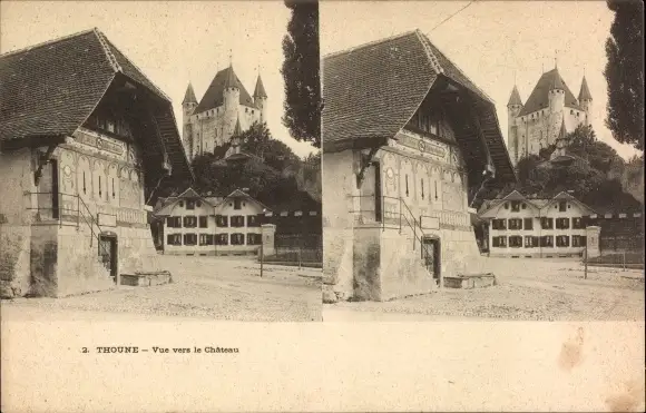 Stereo Ak Thun Kt. Bern Schweiz, Blick auf das Schloss