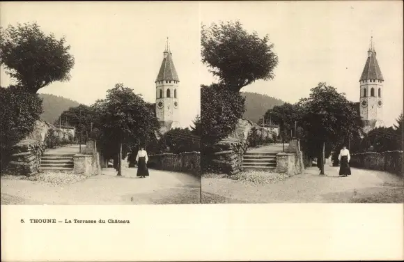 Stereo Ak Thun Kt. Bern Schweiz, La Terrasse du Chateau