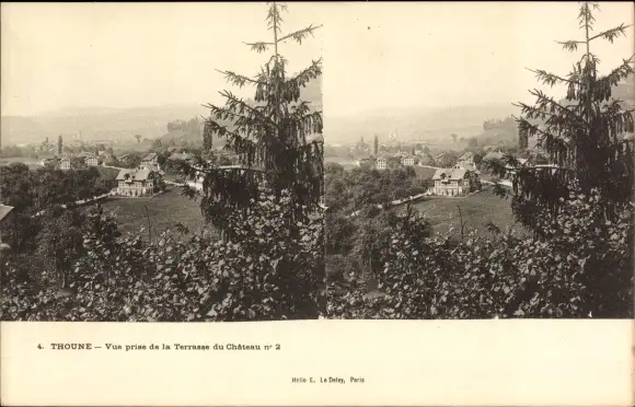 Stereo Ak Thun Thun Kanton Bern Schweiz, Blick von der Schlossterrasse