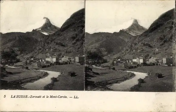 Stereo Ak Zermatt Kt. Wallis, Mont Cervin, Matterhorn