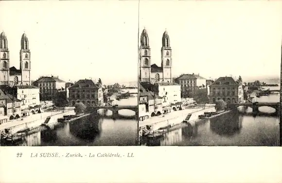 Stereo Ak Zürich Stadt Schweiz, Kathedrale