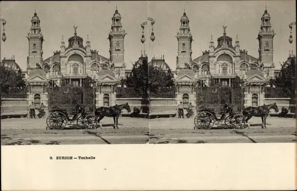 Stereo Ak Zürich Stadt Schweiz, Kutsche vor der Tonhalle