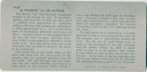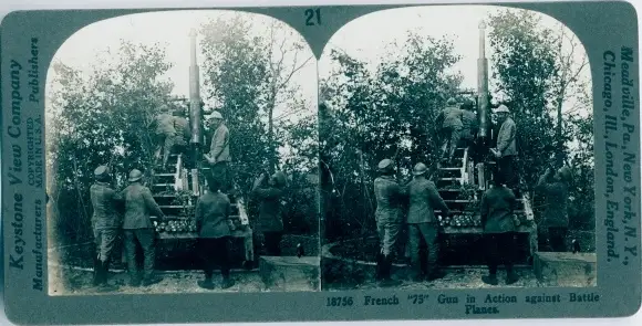 Stereo Foto A French 75 in Action, Artillery, I WK