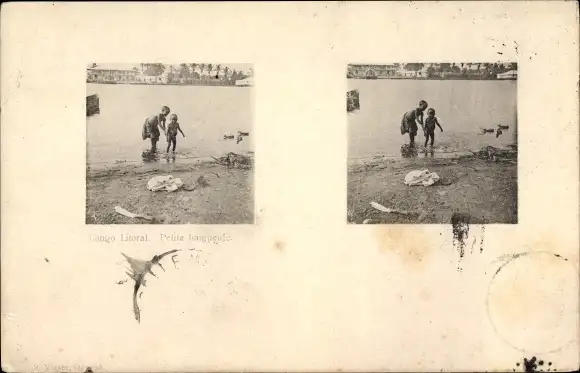 Stereo Foto Ak Congo Litoral, Zwei Kinder baden im Wasser