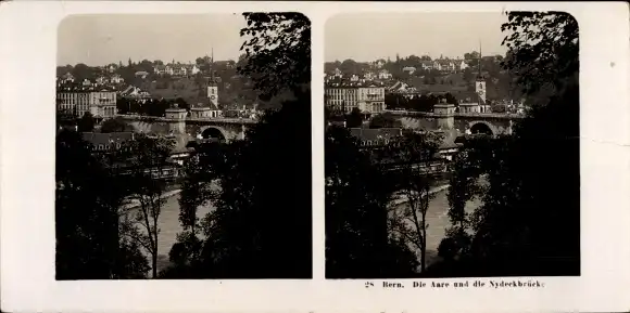 Stereo Foto Bern Stadt Schweiz, Aare und Nydeckbrücke