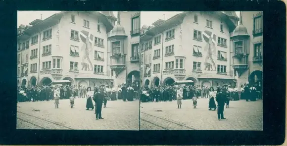 Stereo Foto Bern Stadt Schweiz, Zuschauer betrachten das Glockenspiel