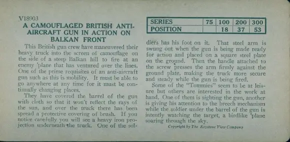Stereo Foto Camouflaged British Anti Aircraft Gun on Balkan Front, I WK