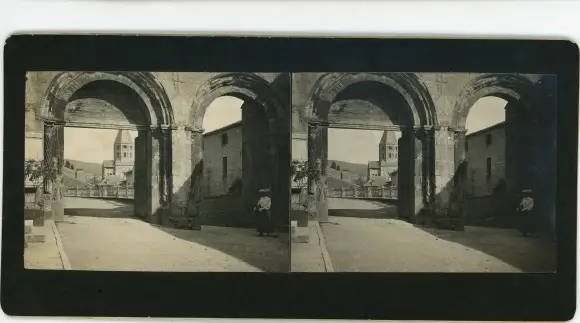 Stereo Foto Cluny Saône et Loire, Straßenpartie, Tor