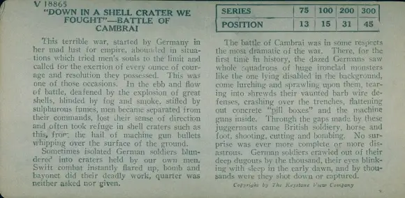 Stereo Foto Down in a shell crate we fought, Battle of Cambrai, I WK