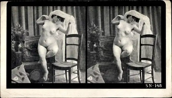 Stereo Foto Erotik, Frauenakt, sitzend, Schleier