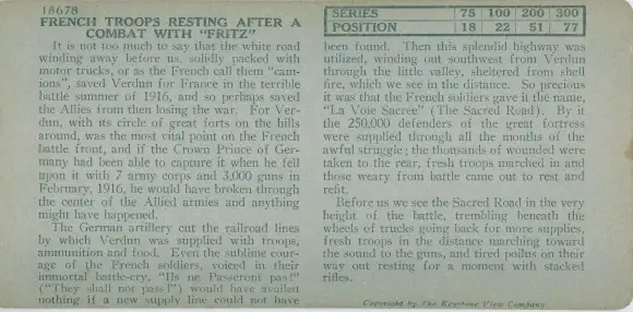 Stereo Foto French troops resting after a combat with Fritz, I WK