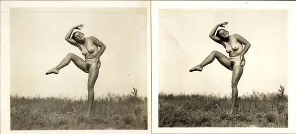 Stereo Foto: Gerhard Riebicke Erotik, Frauenakt, Pose auf einem Bein stehend