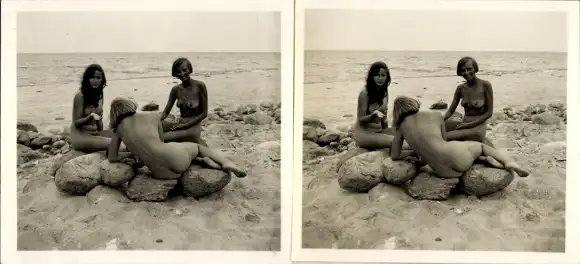 Stereo Foto: Gerhard Riebicke Erotik, Nackte Frauen am Strand