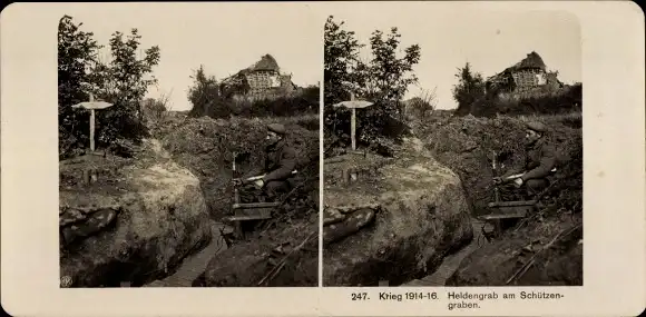 Stereo Foto Heldengrab am Schützengraben, I WK