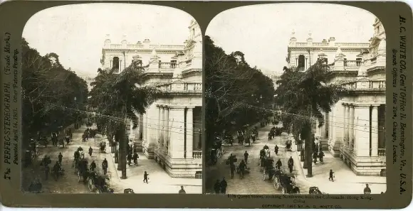 Stereo Foto Hongkong China, Queen Street, Straßenpartie