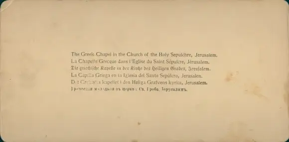 Stereo Foto Jerusalem Israel, Greek Chapel, Church of Holy Sepulchre