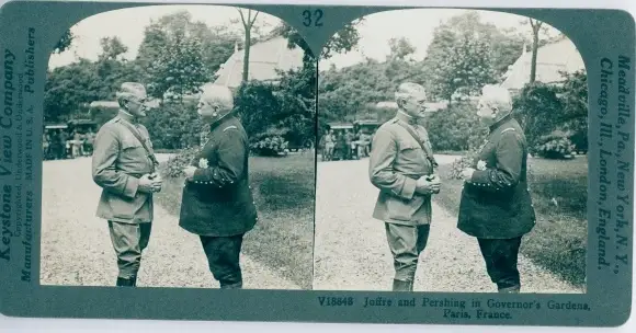Stereo Foto Joseph Joffre and John J. Pershing in Governor's Gardens, Paris, I WK