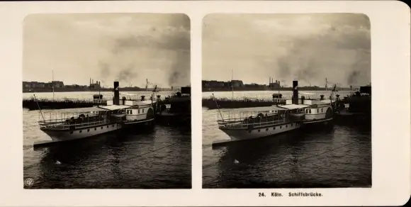 Stereo Foto Köln am Rhein, Schiffbrücke, Dampfer