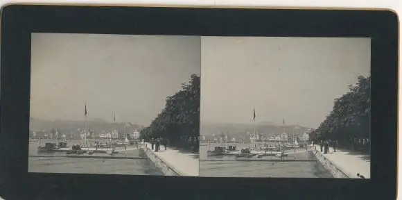Stereo Foto Luzern Stadt Schweiz, Stadtansicht, Anlegestelle, 1908