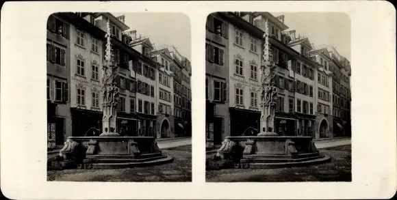Stereo Foto Luzern Stadt Schweiz, Weinmarktbrunnen