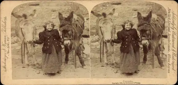 Stereo Foto Mädchen mit Eseln