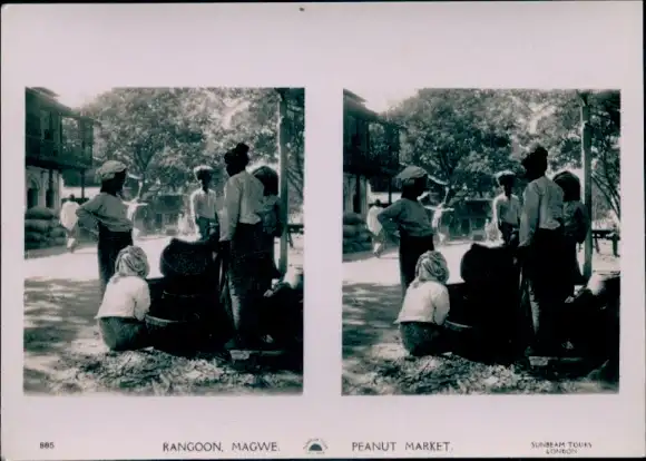 Stereo Foto Magwe Rangun Rangoon Myanmar, Peanut Market