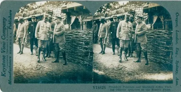 Stereo Foto President Poincare and Marshall Joffre on the Somme Front, I WK