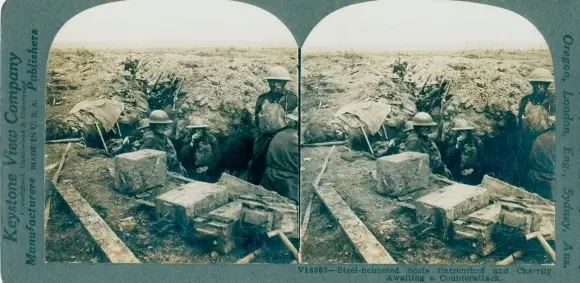 Stereo Foto Scots entrenched and cheerily awaiting a counter attack, I WK
