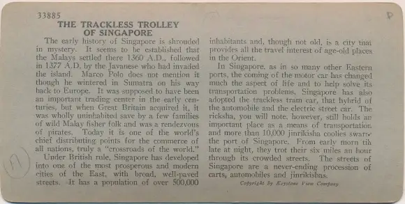 Ansichtskarte, Postkarte, Straßenbahn, Straßenbahnen, Tram, Singapur