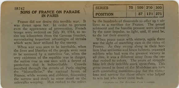 Stereo Foto Sons of France auf Parade in Paris, I WK