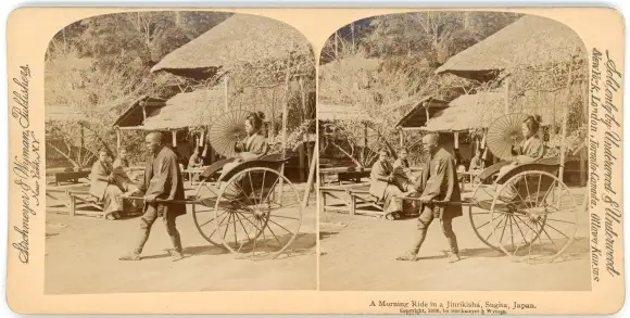 Stereo Foto Sugita Japan, Morning Ride in a Jinriksha, Rikscha