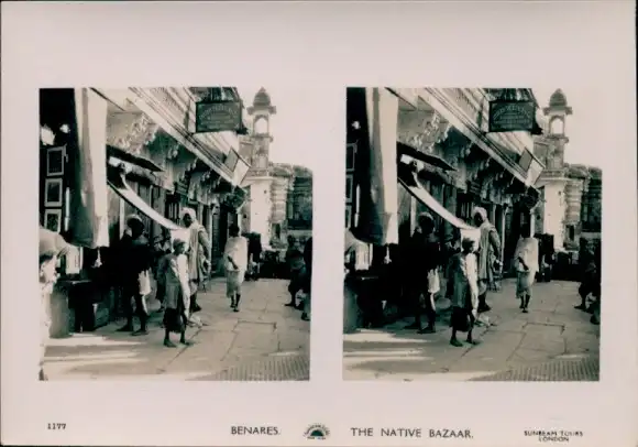 Stereo Foto Varanasi Benares Indien, Native Bazaar